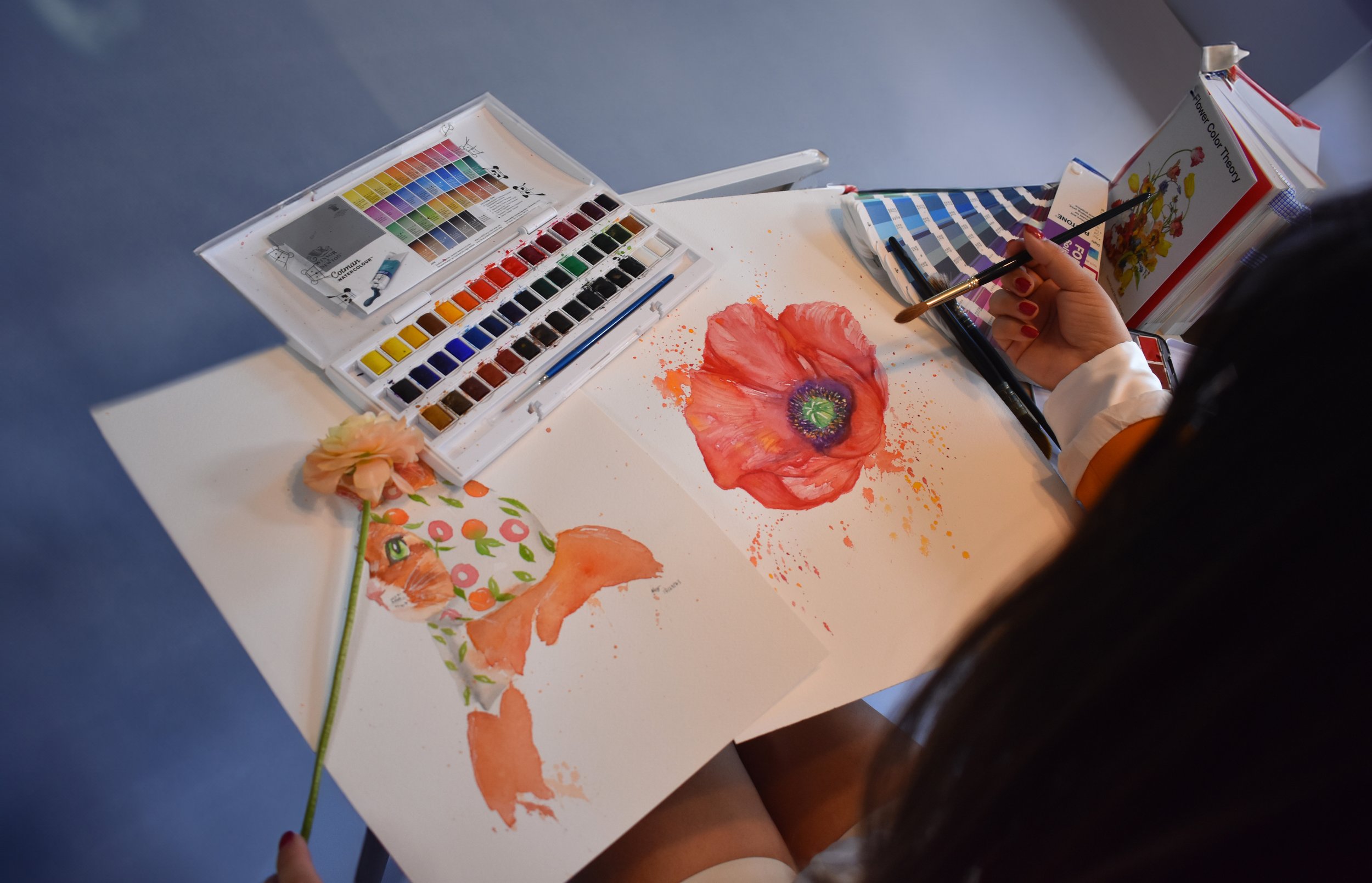 Each design starts with an original watercolor painting by Miriam Meza.